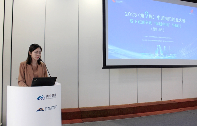 5月19日,2023(第九屆)中國海歸創(chuàng)業(yè)大賽線下直通車暨海創(chuàng)中國導(dǎo)師行活動(澳門站)在澳門青年創(chuàng)業(yè)孵化中心成功舉辦。本次活動由中國技術(shù)創(chuàng)業(yè)協(xié)會留學(xué)人員創(chuàng)業(yè)園工作委員會主辦,澳中致遠(yuǎn)投資發(fā)展有限公司、澳門青年創(chuàng)業(yè)孵化中心承辦。中國技術(shù)創(chuàng)業(yè)協(xié)會副理事長、留學(xué)人員創(chuàng)業(yè)園工作委員會專職副會長兼秘書長郎靖,留創(chuàng)園工委會副秘書長胡頌華,澳門青年創(chuàng)業(yè)孵化中心綜合業(yè)務(wù)部副總監(jiān)徐美珊及3位評委導(dǎo)師出席活動。